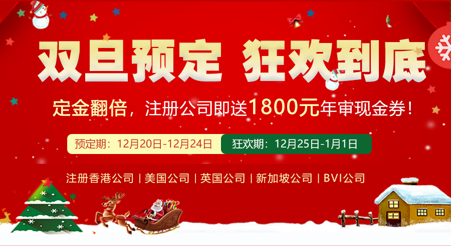 12月25日-1月1日,注册中国香港、海外公司即送1800元年审现金券。